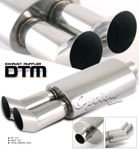 - 100% Brand New in Box, it had never been tried on or used.- DTM Style Stainless Steel Dual Tips Exhaust Muffler. It fits on most vehicles with straight exhaust system
